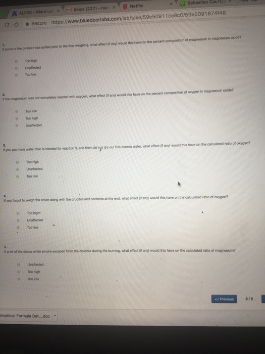 Bluedoorlabs chemistry answers.