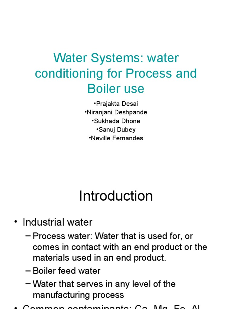 The goal is to improve the quality of water before it is used as boiler feed water.